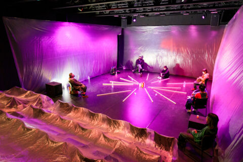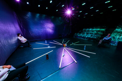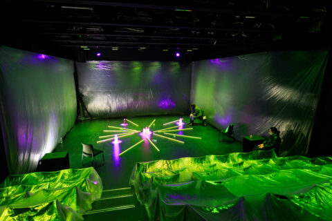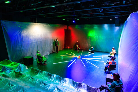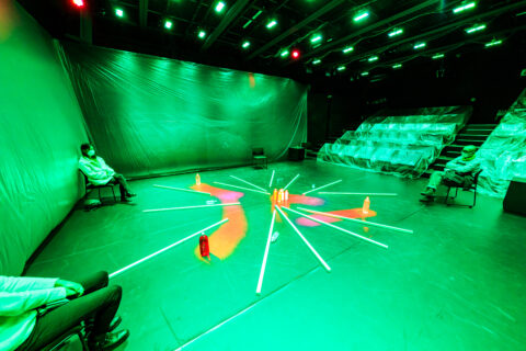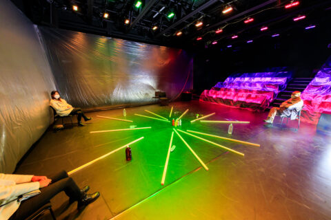 2020年の世界的なコロナ禍の中、客数制限などの規制がある劇場でのパフォーマンス公演に合わせて、劇場設備の転用を考えて制作したインスタレーション。