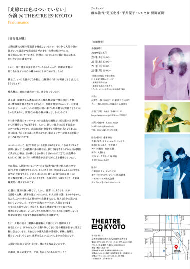 | 2019年12月 | 光線には色はついていない | THEATRE E9 KYOTO、 京都 |