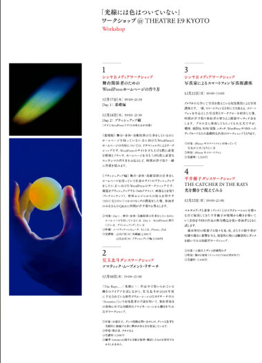 京都で新しく開館したTHEATRE E9 KYOTO オープニングプログラムの一環として、2019年12月に「見ること/観られること/見えること」についての公演と参加アーティストによる各種ワークショップが行われた。